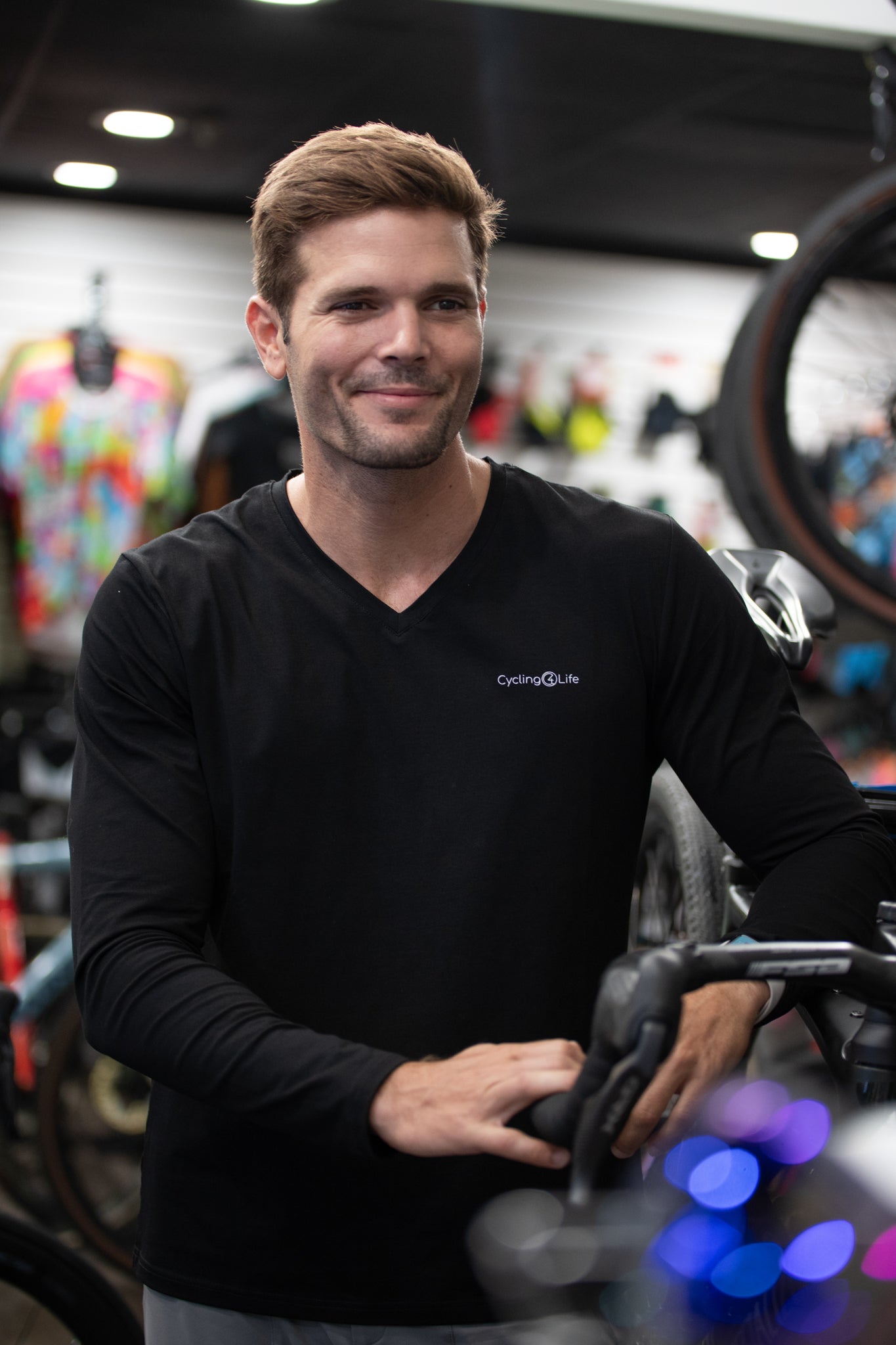 Para los días más fríos, usa esta camiseta de manga larga con ajuste moderno y mantente conectado con tus recuerdos de esos paseos épicos en bicicleta.