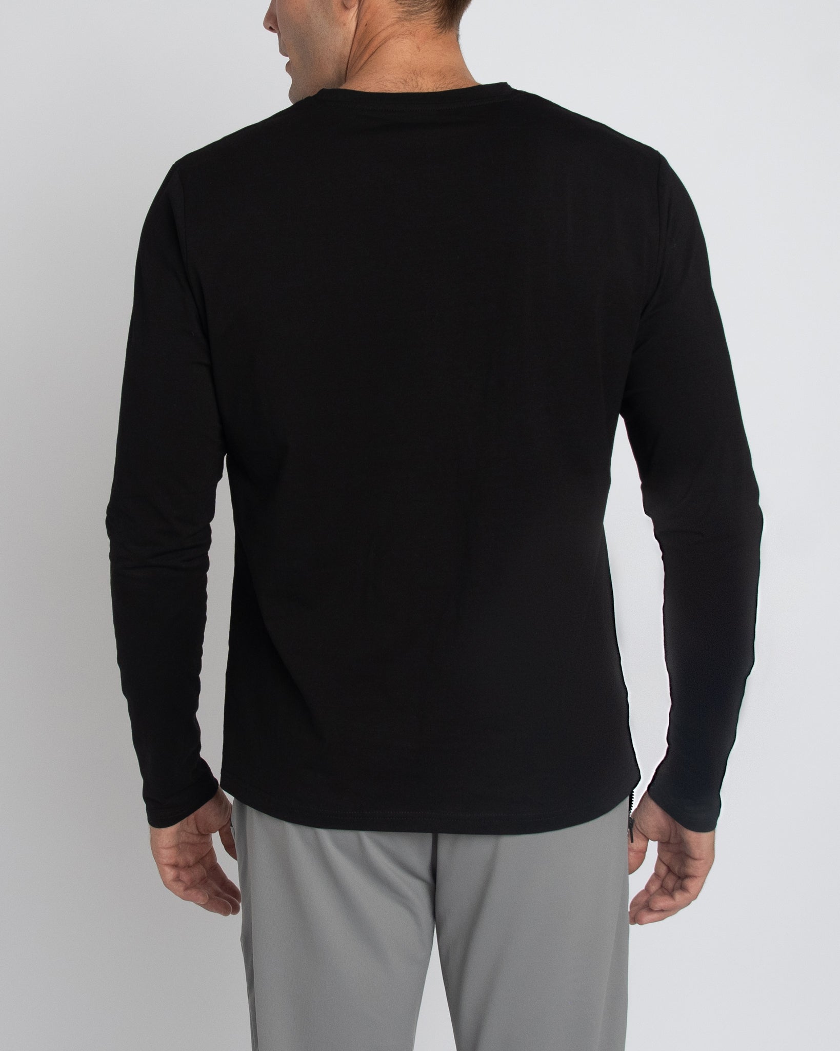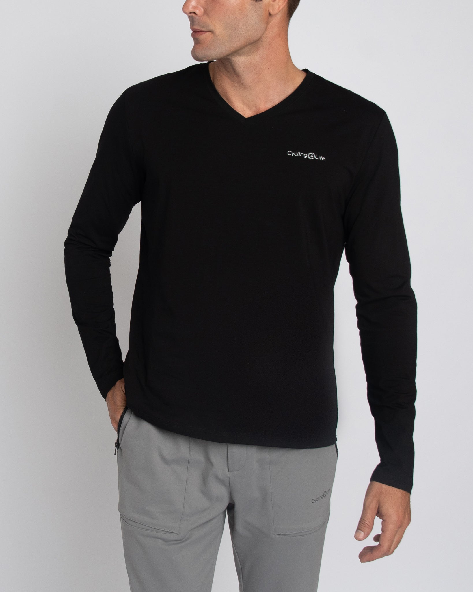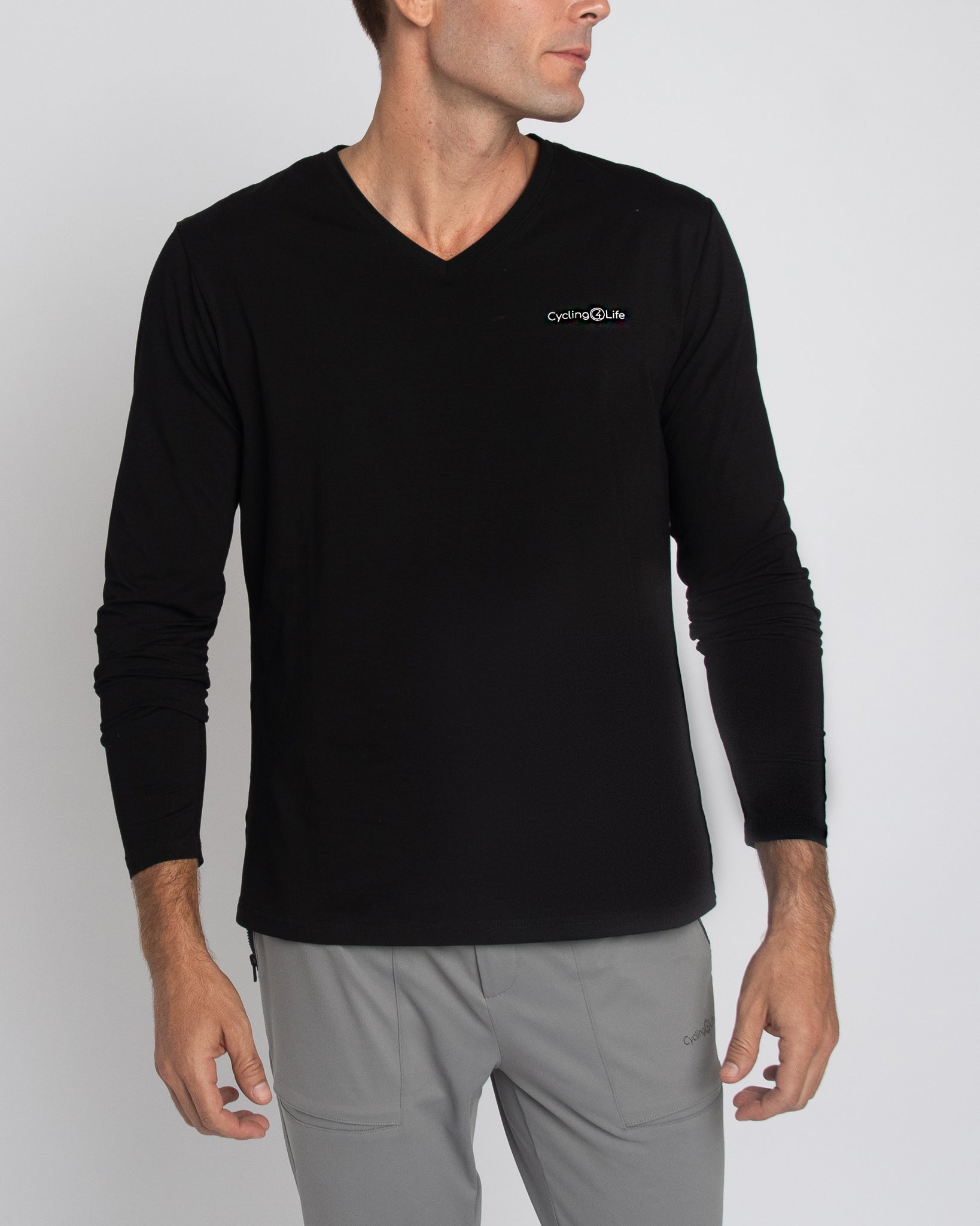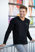 Camiseta de manga larga con cuello en V para hombre en color negro