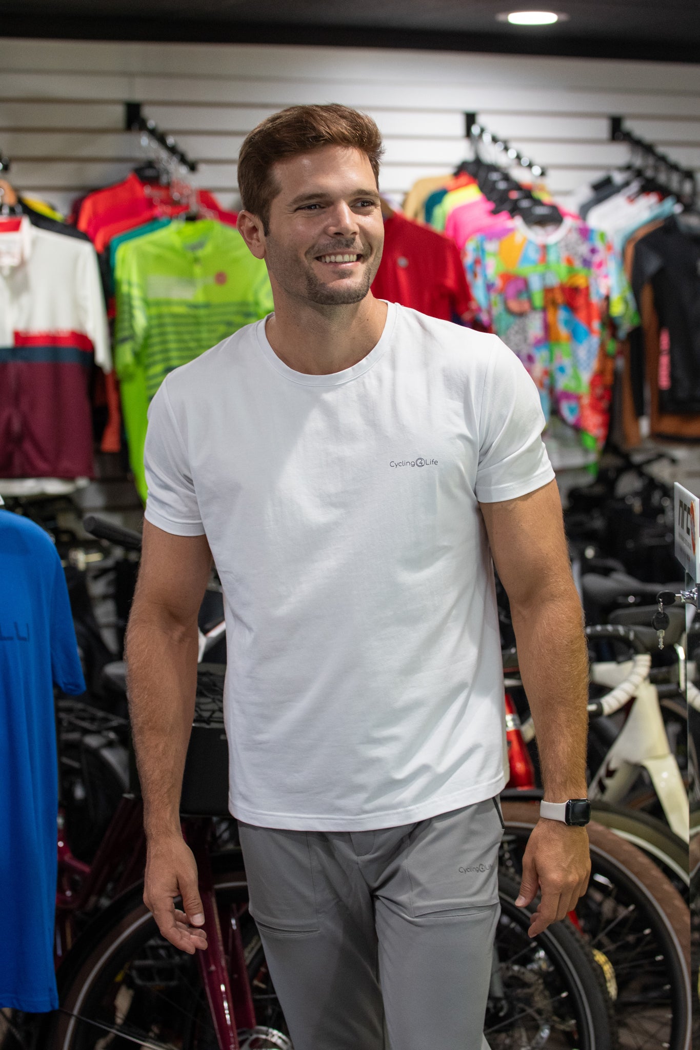 Enfilez ce t-shirt classique, à la coupe moderne, après avoir nettoyé votre balade à vélo pour vaquer à vos occupations.
