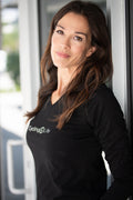 Women's Long Sleeve V-Neck T-Shirt in Black
